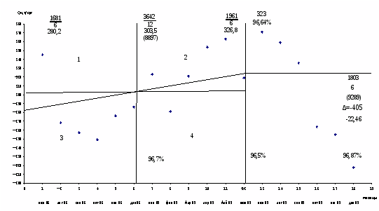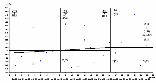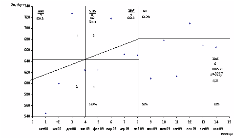 Геолого-промысловый анализ показал, что в условиях выявленных сложных особенностей геологического строения объекта, происходит опережающая выработка запасов нефти высокопродуктивных песчаников нефтяной зоны и значительно отстает выработка запасов высокопродуктивных глинистых и малопродуктивных коллекторов, в связи с чем за время разработки на площади произошло изменение структуры запасов в сторону ухудшения. Если в начальный период разработки извлекаемые запасы нефти высокопродуктивных коллекторов составляли 70,1%, высокопродуктивных глинистых – 21,7%, малопродуктивных – 15,2% запасов площади, то текущие извлекаемые запасы распределились, соответственно, 35,5%, 36,3% и 36,2% остаточных извлекаемых запасов площади, т.е доля трудноизвлекаемых запасов выросла.