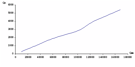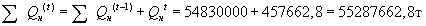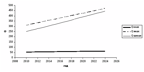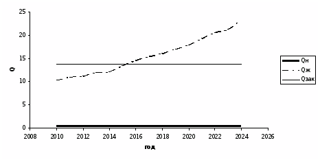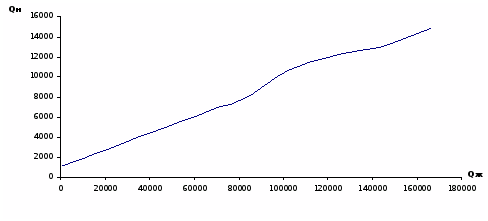 Рис. 5.2. Динамика накопленной добычи нефти, жидкости и накопленной закачки воды