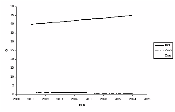 Рис. 5.3.Динамика КИН, темпа отбора от НИЗ и темпа отбора от ТИЗ