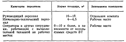Кроме того, часть вычислительной техники размещается непосредственно в помещении цеха. Сюда входят средства управления оборудованием, терминалы операторов, терминалы оперативного контроля и другие средства, состав и размещение которых определяются в зависимости от условий реализации конкретного проекта. Нормы площади указаны в табл. 3.