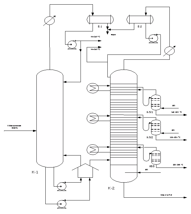 Из сырой нефти непосредственно одним процессом нельзя получить ни один товарный нефтепродукт (за исключением газов), все они получаются последовательной обработкой на нескольких установках. Первой в этой цепочке всегда стоит установка ЭЛОУ-АВТ, поэтому от качества работы этой секции будет зависеть работа всех остальных звеньев технологической цепочки [1].