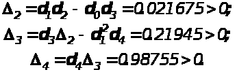 Исследуем неравенства d>2>>0, d>3>>0, d>4>>0 . Из первого неравенства следует, что для положительности коэффициента d>2> необходимо, чтобы выполнялось условие