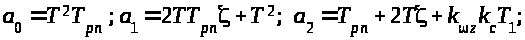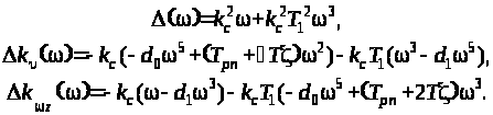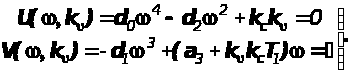 Подставим в это выражение значения коэффициентов d>2>, d>3>, d>4>, как функций параметров k>> и k>> , после преобразований получим квадратное уравнение, определяющее передаточное число по угловой скорости как функцию от передаточного числа по углу тангажа