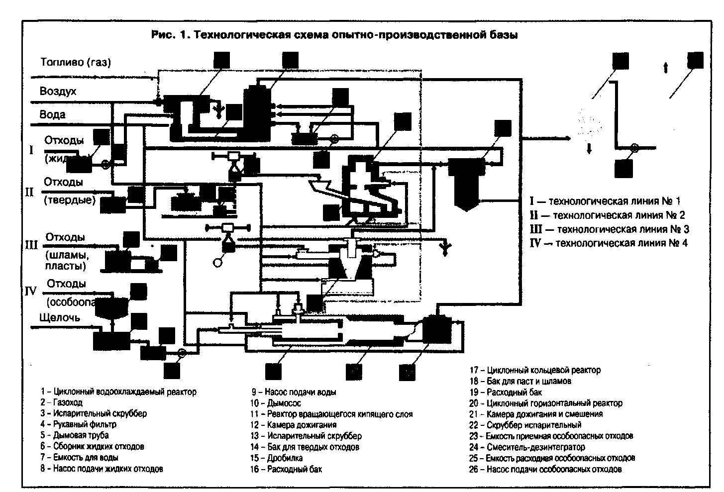 Жидкие, твердые и пастообразные отходы фармацевтической продукции в настоящее время подвергаются термическому обезвреживанию на ряде промышленных предприятий Московского региона. Большая часть этих отходов утилизируется на огневых реакторах опытно-производственной базы (ОПБ) ОАО «НПО Техэнергохимпром» в г. Орехово-Зуево (рис.1), где для огневого обезвреживания непригодных лекарственных препаратов после их предварительной сортировки используют три технологические линии (агрегатная нагрузка каждой линии около 100 кг/ч): жидкая форма утилизируется на линии № 1, твердая - на линии № 2, а пастообразная - на линии № 3. Услугами ОПБ пользуются более 100 фармацевтических фирм Москвы. Однако годовая нагрузка ОПБ по уничтожаемым лекарственным препаратам не превышает 100 т, что не может удовлетворить всех потребителей.