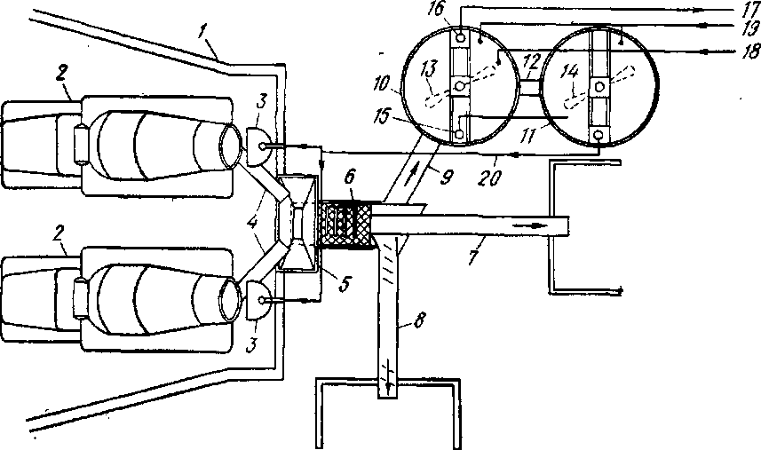 В резервуарах 10, 11 имеются мешалки 13, 14, насос для перекачки взвеси 16 и трубопровод 17, ведущий к участку производства бетона, а также линия возврата взвеси 18 и линия подачи воды 19, имеющая выход в каждую из емкостей.