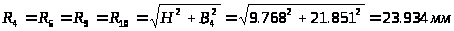По заданным теоретическим размерам и длинам находят радиусы точек: