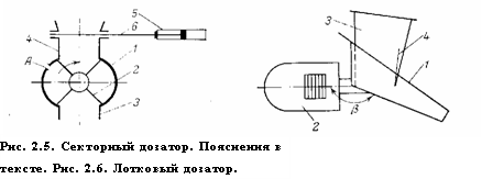 По конструкции дозаторы непрерывного действия подразделяют на секторные, лотковые, тарельчатые, ленточные, вибрационные и червячные. Наиболее широкое распространение в подготовительных производствах нашли секторные (объемные) дозаторы. К их преимуществам следует отнести низкую стоимость и простоту в эксплуатации. Основным их недостатком по сравнению с весовыми дозаторами является меньшая точность дозирования.