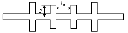 Токонесущая полоска СВЧ фильтра нижних частот изображена на рис. 2. Последовательные отрезки волноводов высокого характеристического сопротивления аппроксимируют индуктивность фильтра прототипа, каждая же емкость фильтра состоит из двух одинаковых разомкнутых отрезков несимметричных полосковых волноводов относительно низкого характеристического сопротивления.
