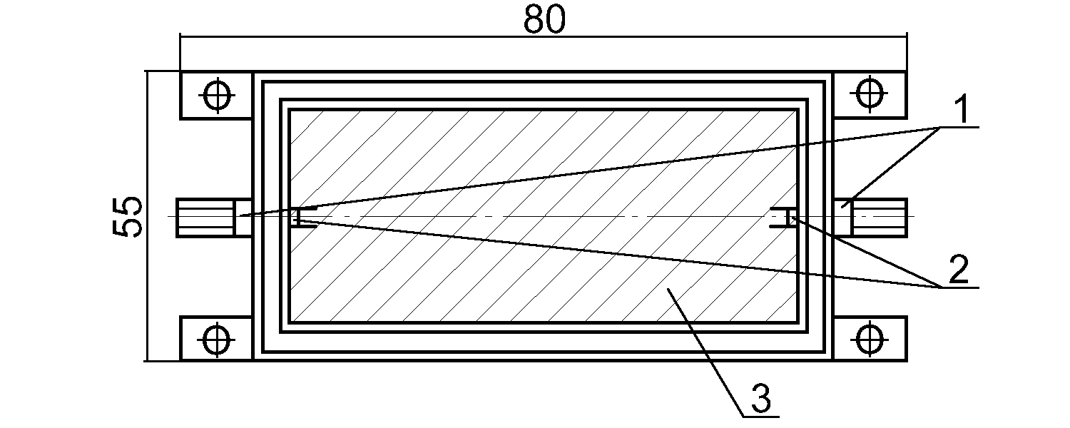 Корпус для данного ФНЧ фильтра показан на рис. 5.3. Где 1 – СВЧ соединители; 2 – перемычки; 3 – СВЧ микросборка.