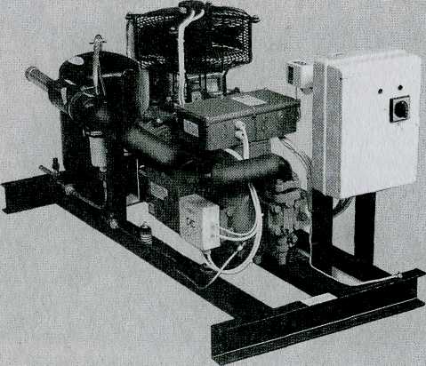 - полугерметичный (бессальниковый) компрессор, оснащенный запорными вентилями на всасывании и нагнетании, реле контро-|яя смазки, а также картерным подогревателем;