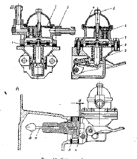 Рисунок 8. Топливный насос а - насос б - положение толкателя насоса