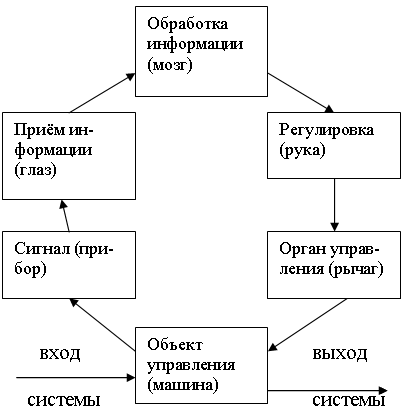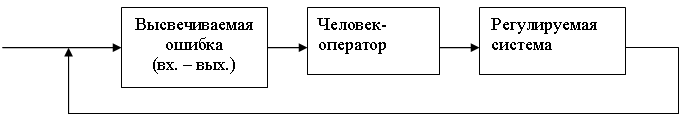 В системе управления оператор становится непосредственным участником в выполнении системы её задачи и включён в систему «как бы последовательно» (по схеме рисунка – параллельно) с техническими элементами системы.