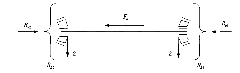 Частота вращения вала, n>2> = 95,5 об/мин, угловая скорость ω>2> = 10 с-1, d>n> = 35 мм. Схема установки подшипников - в распор. На опоры вала действуют силы: