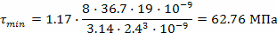 Максимальные и минимальные напряжения в пружинах: