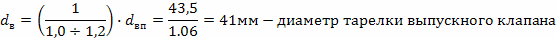 Площади проходного сечения и диаметра клапана при их максимальном подъеме:
