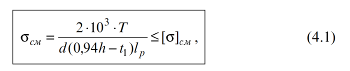 Соединения призматическими шпонками (рис. 4.5 и 4.1) проверяют по условию прочности на смятие:
