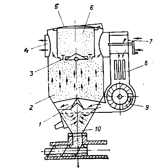 Для переработки гидрофильных полимеров применяют бункера вакуумированием с целью удаления влаги и летучих. В не- которых случаях используют бункера, в которых материалы подогревается горячим воздухом (рис. 2).