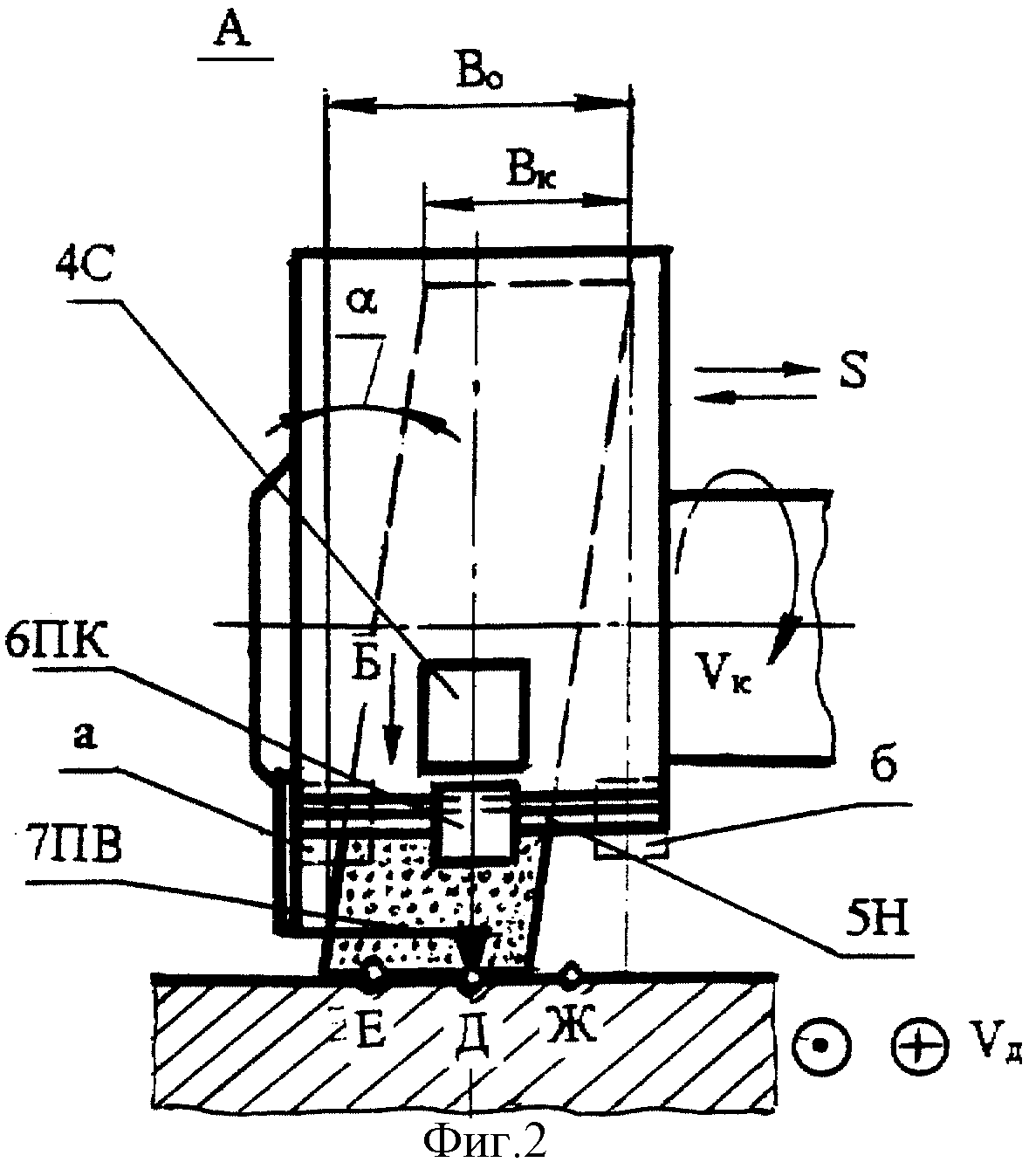 В процессе обработки при вращении абразивного круга и продольного перемещения стола с заготовкой каретка 6ПК перемещается по направляющим 5Н из положения "а" в положение "б", охватывая всю зону шлифования В>о> (см. фиг.3).