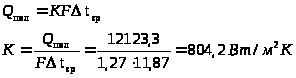 Из основного уравнения теплопередачи рассчитываем опытное значение коэффициента теплопередачи: