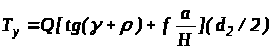 Ту = Q·tg(γ+ρ) ·(d2/2).