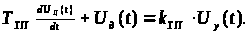 где U , U – соответственно потенциалы движков потенциометров Пвх и Пвых ; К – коэффициент усиления измерительного устройства (потенциометры Пвх и Пвых имеют одинаковые конструкции и параметры). Затем сигнал U (t) усиливается по напряжению и мощности соответственно с помощью УТП и ТП. В результате на выходе регулятора формируется управляющее воздействие – напряжение Uд(t) , которое подводится к якорной обмотке двигателя. Значение управляющего напряжения зависит от величины сигнала рассогласования коэффициентов усиления тиристорного преобразователя Кт.п – и усилителя постоянного тока Купт.