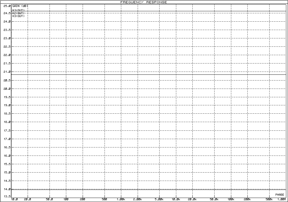 Для исследования частотных характеристик безынерционного звена в прикладном пакете Proteus\ISIS составляем структурную схему, представленную на рисунке 1 для трех значений K: