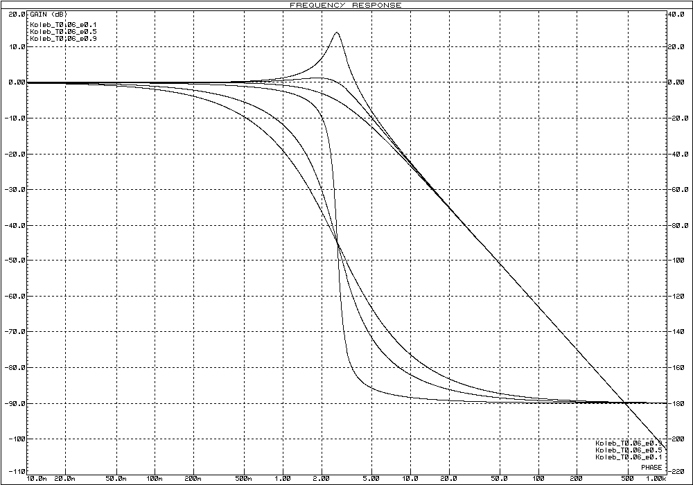 при неизменной постоянной времени увеличение (уменьшение) коэффициента демпфирования приводит к уменьшению (увеличению) перерегулирования, сужению (расширению) полосы пропускания и уменьшению (увеличению) колебательности.