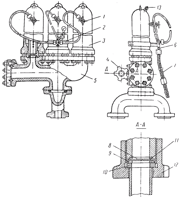 Отключение всех сосудов и другого оборудования, находящегося под давлением, необходимо производить двумя последовательно установленными задвижками при наличии между ними дренажного устройства (диаметром не менее 20 мм, имеющего прямое соединение с атмосферой).