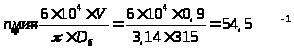 n>вх> = n>в> u = 54,5 (2,5…5,6) 8= 1490…2984 об/мин.
