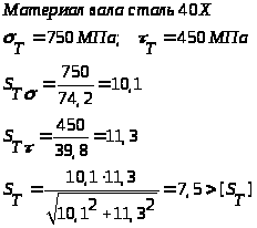 В расчете определяют нормальные и касательные напряжения в рассматриваемом сечении вала при действии максимальных нагрузок.