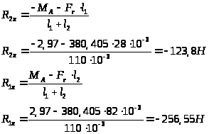 При расчете подшипников силы, действующие в зацеплении, взяты из распечаток, сделанных на ЭВМ по стандартным программам, разработанным на кафедре РК - 3.
