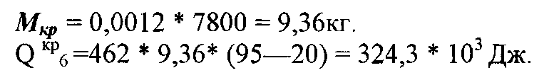 Qкар>6> = 462 * 70,2 * (84,65 - 20) = 2096,75 * 103 Дж