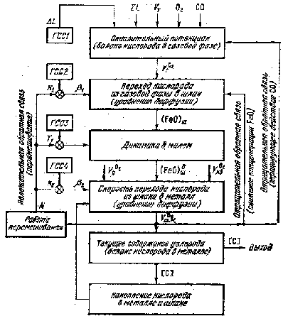 Рис. 2.1 Блок схема модели процесса обезуглероживания стали в конвертере