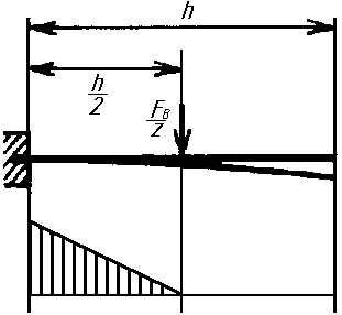 При составлении расчетной схемы (см. рис.) виток развёртывают и рассматривают как консольную балку, нагруженную посередине консоли силой FВ / z, условно считая нагрузку равномерно распределенной между витками.
