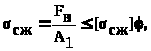 - коэффициент уменьшения допускаемого напряжения при продольном изгибе (см. таблицу) в зависимости от гибкости винта