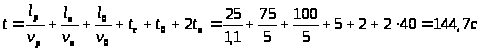 Т = 2L>пр>(n>1>/v>1> + n>2>/v>2> + n>3>/v>3> +…)+ 2 nt>1> = 2.100.4/66,7 + 2.4.1 = 20мин