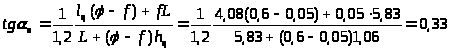 tgά>п> = 0,5b/1,2h>ц> = 0,5 . 2,0/1,2 . 1,06 = 0,79