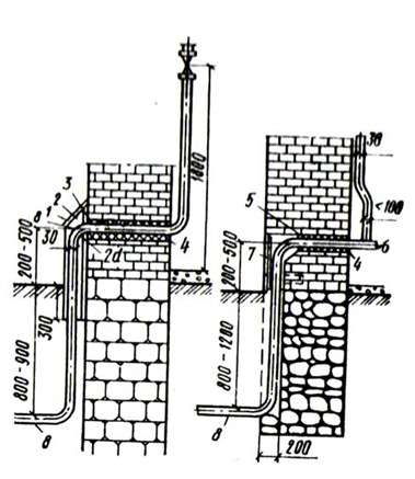 Из газораспределительных пунктов газ через вводы поступает в здания. Для жилых зданий газопроводы проектируют с цокольными вводами в лестничные клетки или кухни. Цокольный ввод монтируют из стальных бесшовных горячекатаных труб с минимальной толщиной стенки 3,5 мм.