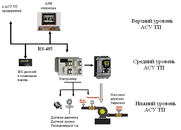 К верхнему уровню АСУ ТП относится АРМ оператора и БД.