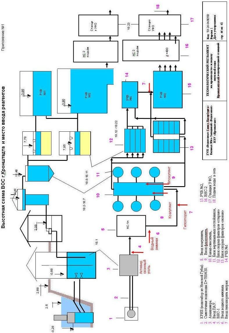Решение о выборе марки принимает главный инженер-технолог (эколог) или его заместитель. Следует отметить, что осадки на всех ступенях очистки подлежат обезвоживанию. После вода очищается от хлопьев, поступает во вторичные радиальные отстойники, далее через лоток Паршаля (для замерения расхода) в контактные резервуары. Из этих резервуаров воду можно взять для не питьевого и не рыбохозяйственного пользования или слить в Финский залив. Вода выбрасывается на такой стадии, чтоб залив уже мог самостоятельно до конца её переработать в природных условиях.