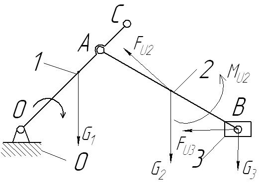 Также мы можем определить силы инерции, действующие на звенья плоского рычажного механизма, по формуле: