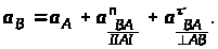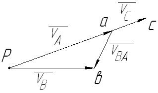 Вектор скорости точки А представляет собой геометрическую сумму вектора скорости точки О и скорости относительного вращательного движения точки А вокруг точки О: