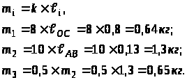 Для определения массы каждого звена плоского рычажного механизма воспользуемся следующими формулами: