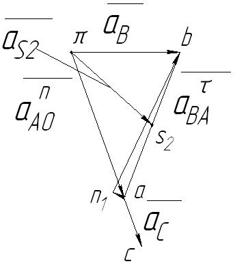 Момент от сил инерции направлен противоположно направлению действию углового ускорения. Для определения углового ускорения звена необходимо на плане ускорений взять вектор тангенциальной составляющей ускорения звена и мысленно перенести его в ведомую точку звена (точка, стоящая первой в индексе), а ведущую условно остановить. Направление вращения звена при этом будет характеризовать направление углового ускорения звена.
