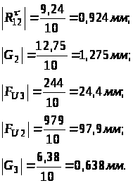 Также уславливаемся, что у линейных звеньев центр масс лежит на середине звена. Значения ускорений центра масс найдены в кинематическом анализе плоского рычажного механизма. Находим силы инерции: