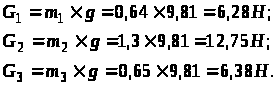 Далее определяем силы тяжести для каждого звена плоского рычажного механизма: