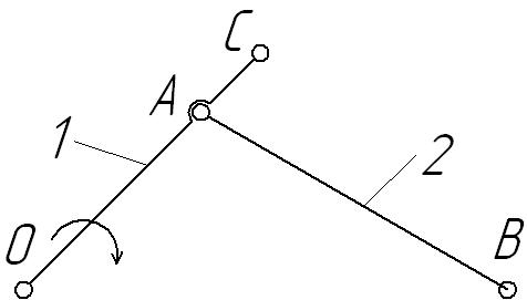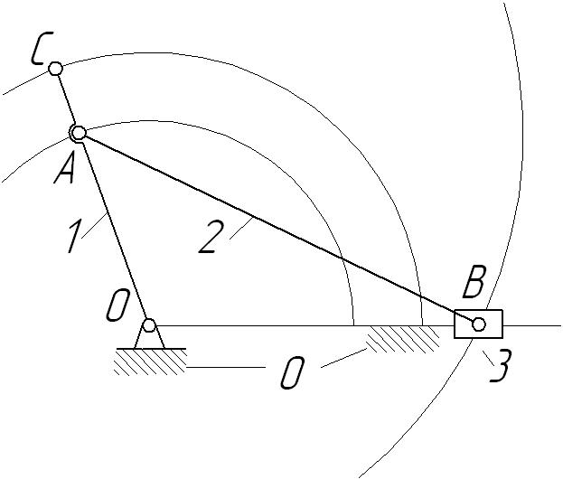 Для синтеза кинематической схемы сперва необходимо установить масштабный коэффициент длин μ>ℓ>. Для нахождения μ>ℓ >необходимо взять натуральный размер кривошипа OС и разделить его на размер отрезка произвольной длины │OС│: