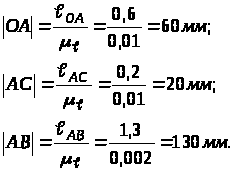 После этого, с помощью масштабного коэффициента длин, переводим все натуральные размеры звеньев в отрезки, с помощью которых мы будем строить кинематическую схему: