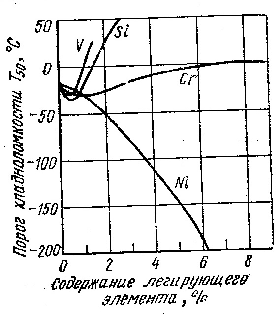 Рисунок 5. Влияние легирующих элементов на порог хладноломкости железа
