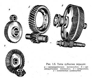 Различают передачи, осуществляемые силами трения,— ременные, фрикционные, и передачи, основанные на использовании зацепления,— цепные, зубчатые и червячные.
